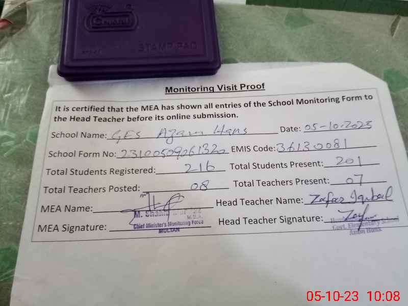 | EMIS Code: 36130081 | Name of School: GES AZAM HANS P/O KOTHAY WALA | |||