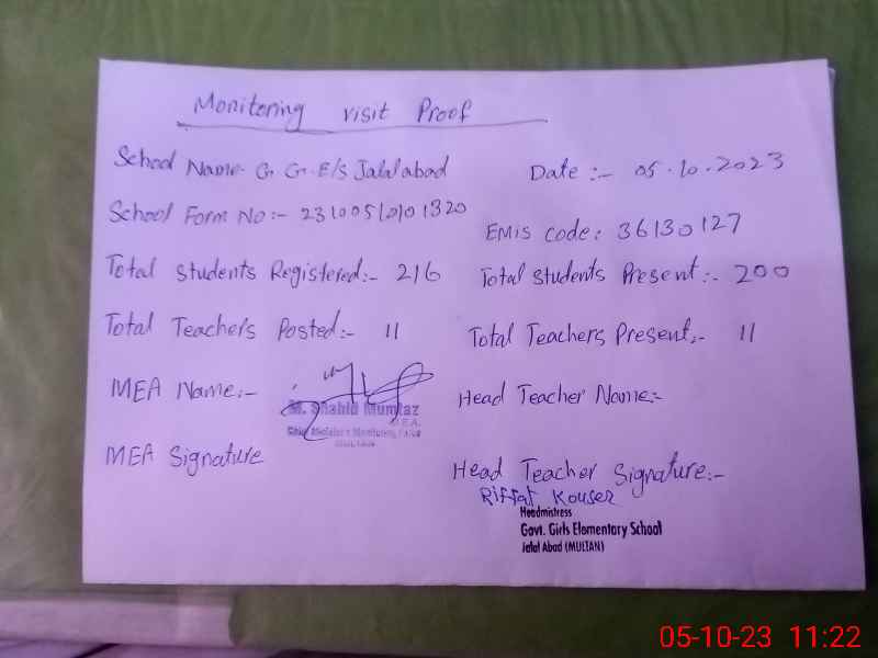| EMIS Code: 36130127 | Name of School: GGES JALALABAD | |||