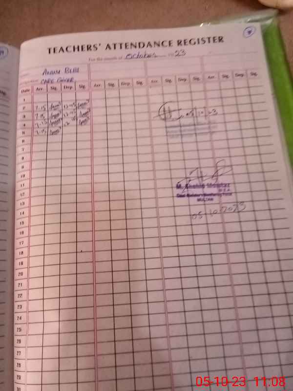 | Name: Sa**** Qa**** Designation: (School Headmaster's/Headmistress's) Sst Phone/Cell Number: 03**** |