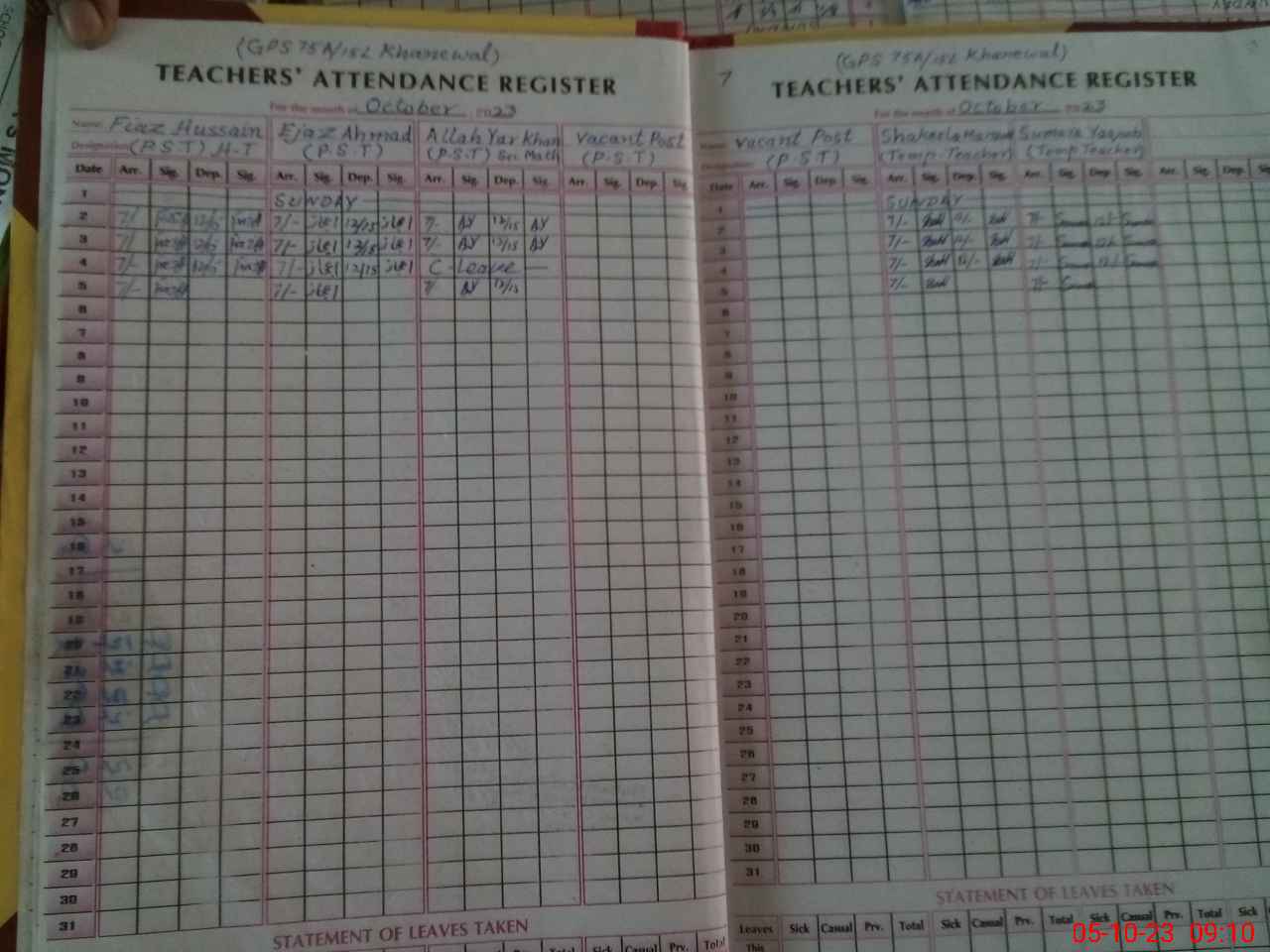 | Name: FI**** HU**** Designation: (School Headmaster's/Headmistress's) PST Phone/Cell Number: 03**** |