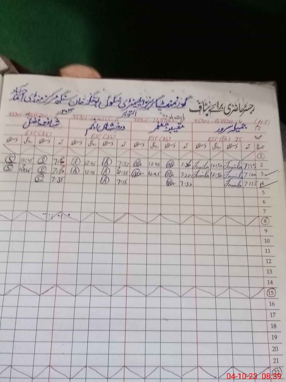 | Name: Mu**** Ja**** Designation: (School Headmaster's/Headmistress's) Est Gen Phone/Cell Number: 03**** |