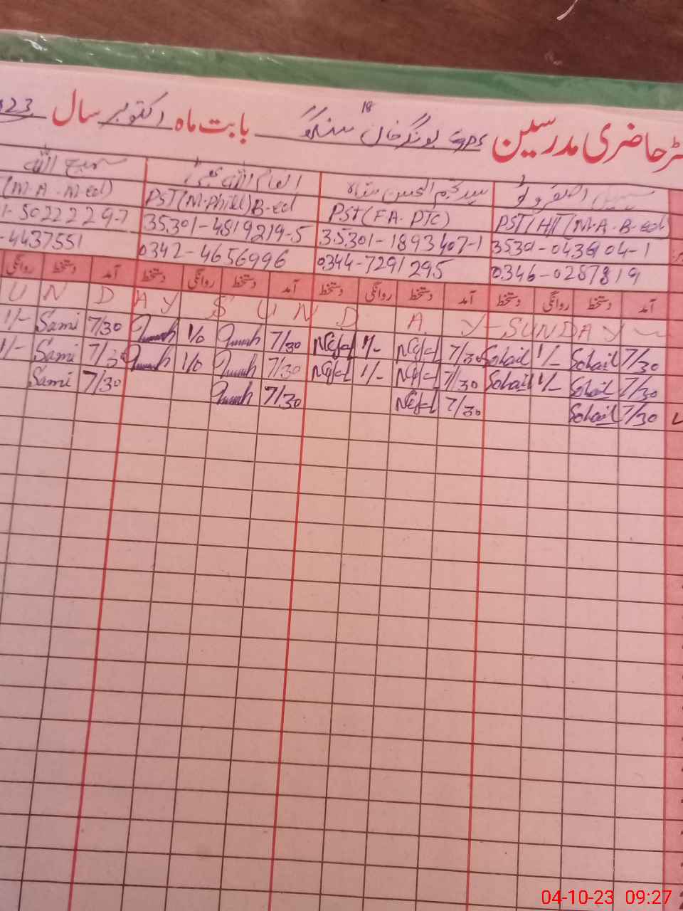 | Name: So**** As**** Designation: (School Headmaster's/Headmistress's) PST Phone/Cell Number: 03**** |