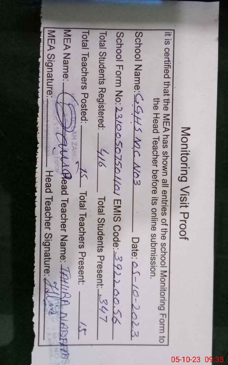 | EMIS Code: 39220056 | Name of School: GGHS MC NO.3 M BLOCK ARIFWALA | |||