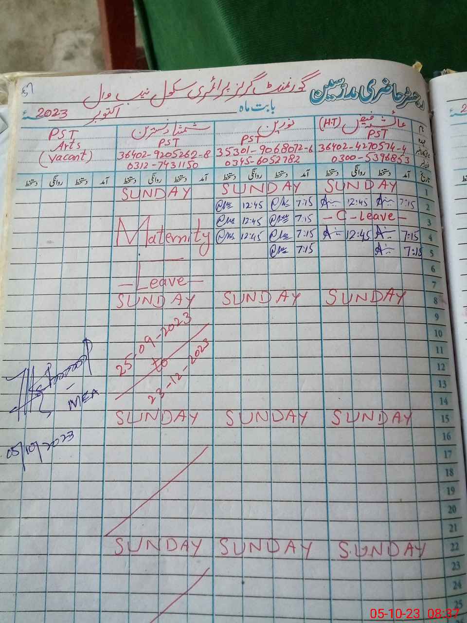 | Name: AY**** FA**** Designation: (School Headmaster's/Headmistress's) PST Phone/Cell Number: 03**** |