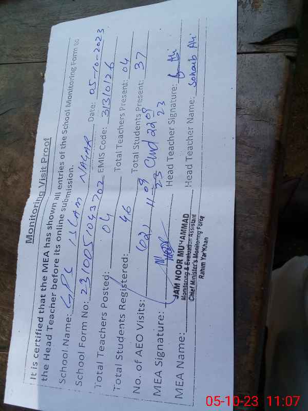 | EMIS Code: 31310126 | Name of School: GPS ISLAM NAGAR | |||
