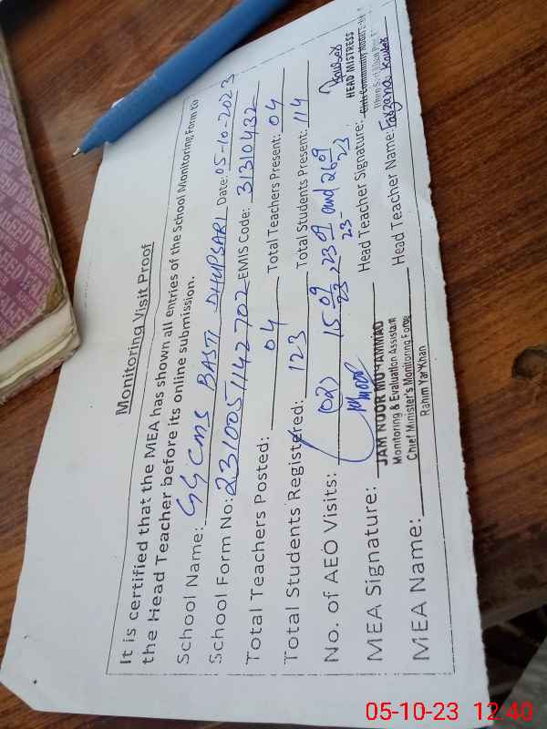 | Attendance Register | Head Teacher | MEA with School | Visit Proof |
