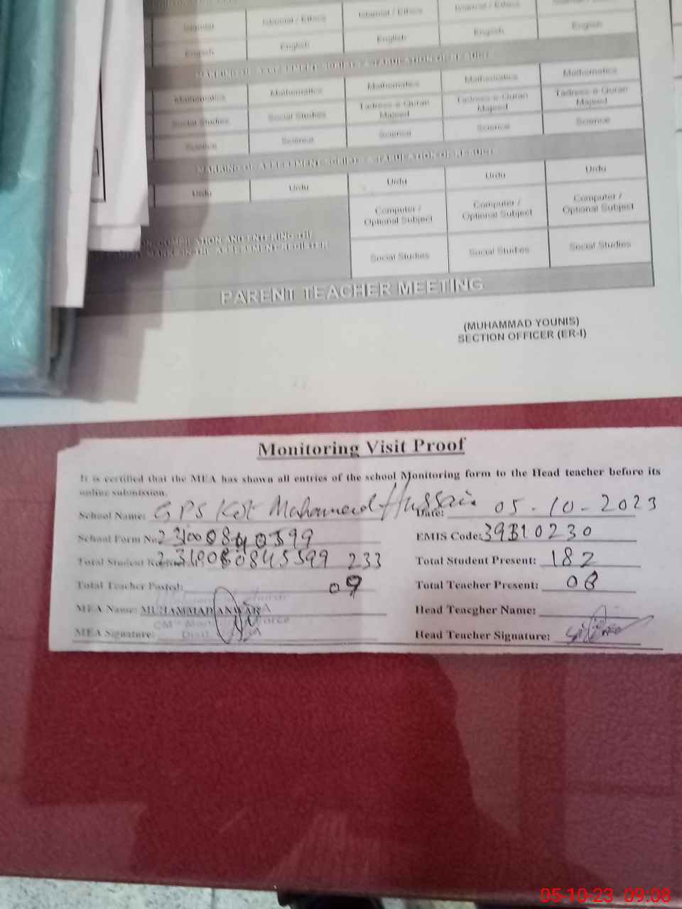 | EMIS Code: 39310230 | Name of School: GPS KOT MUHAMMAD HUSSAIN (HUJRA) | |||