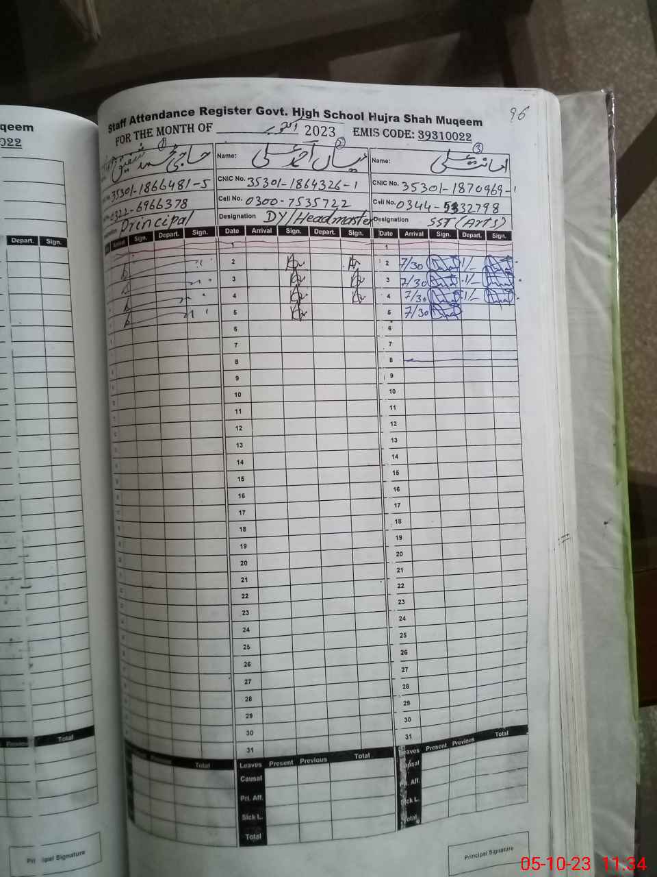 | CNIC | Full Name | Designation | R/C | Absence during last cal. month |