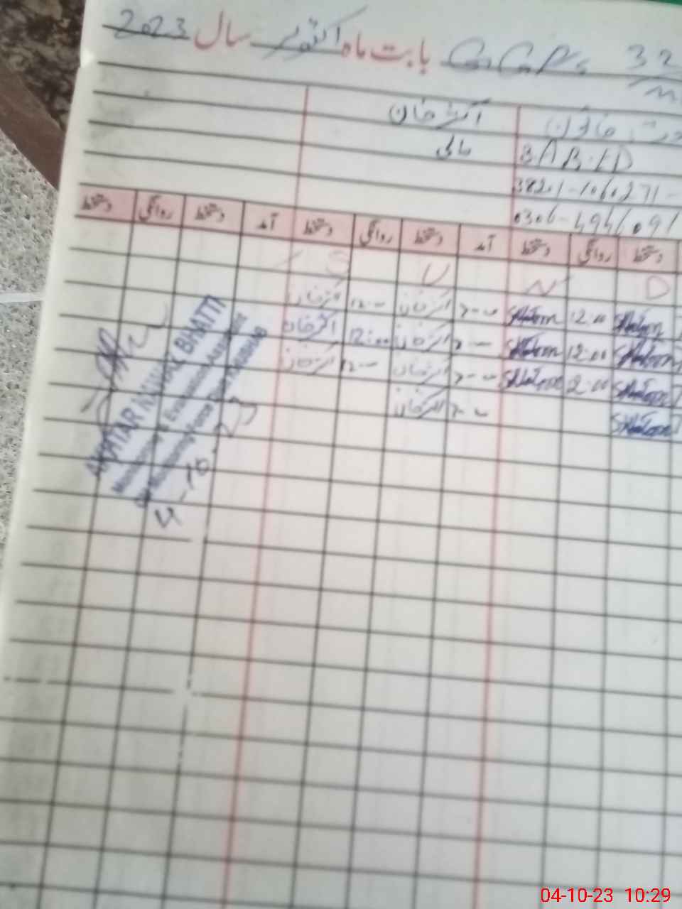| Name: Kh**** Ta**** Designation: (School Headmaster's/Headmistress's) PST/PTC/JV Phone/Cell Number: 03**** |