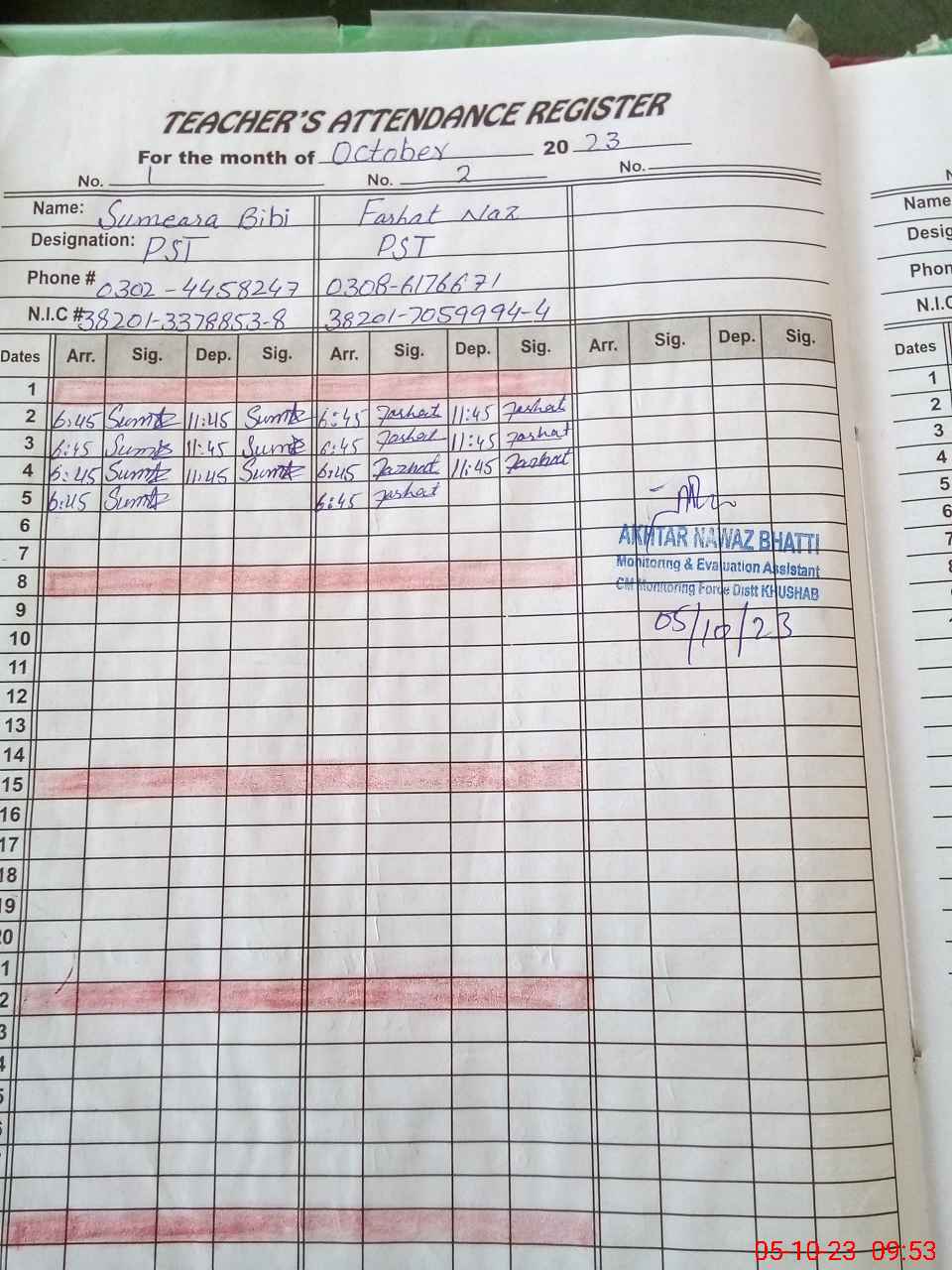 | Name: Su**** Bi**** Designation: (School Headmaster's/Headmistress's) Ese Sci Math Phone/Cell Number: 03**** |