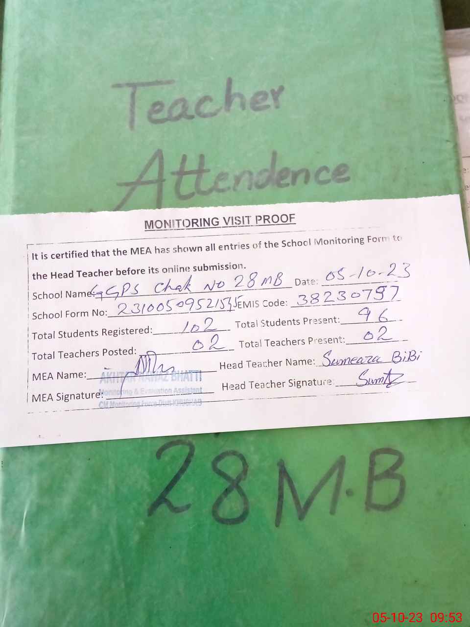 | EMIS Code: 38230757 | Name of School: GGPS CHAK NO 28 MB | |||