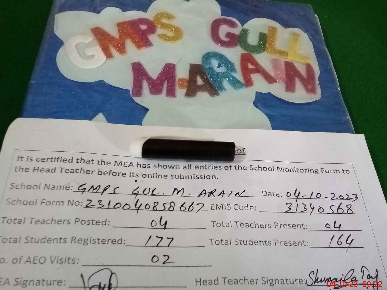 | EMIS Code: 31340568 | Name of School: GMPS GUL MUHAMMAD | |||