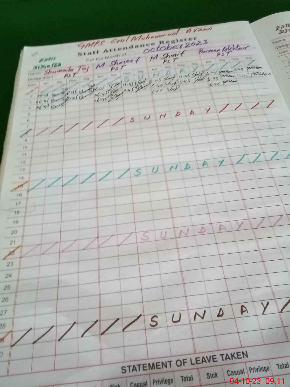 | Name: Sh**** Ta**** Designation: (School Headmaster's/Headmistress's) PST Phone/Cell Number: 03**** |