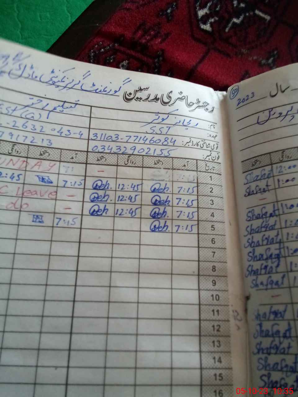 | Name: Re**** Ko**** Designation: (School Headmaster's/Headmistress's) SST( SCI) Phone/Cell Number: 03**** |