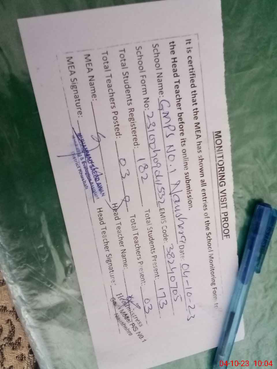 | EMIS Code: 38240705 | Name of School: GMPS NO. 1 NAUSHERA | |||