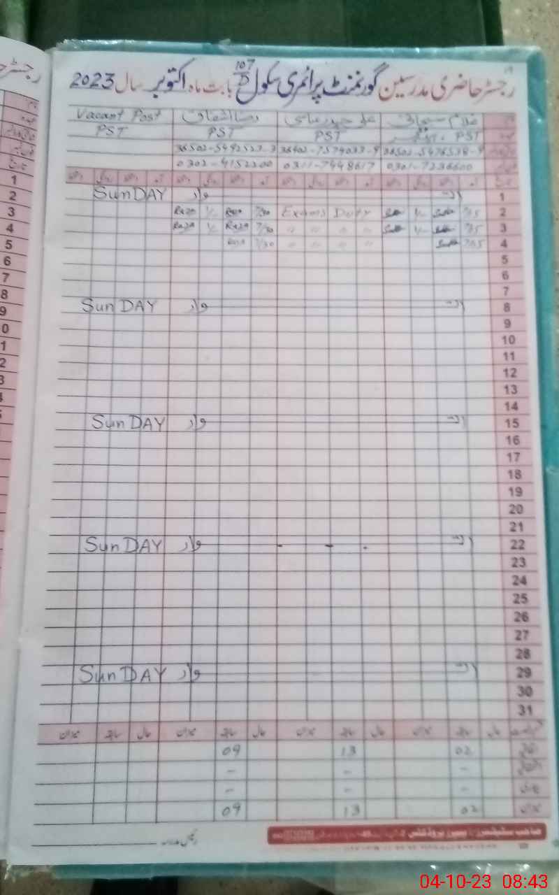 | Name: Ra**** Is**** Designation: (School Headmaster's/Headmistress's) PST (Sci) Phone/Cell Number: 03**** |