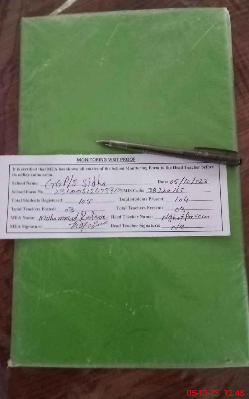 | EMIS Code: 38220165 | Name of School: GGPS SIDHA | |||