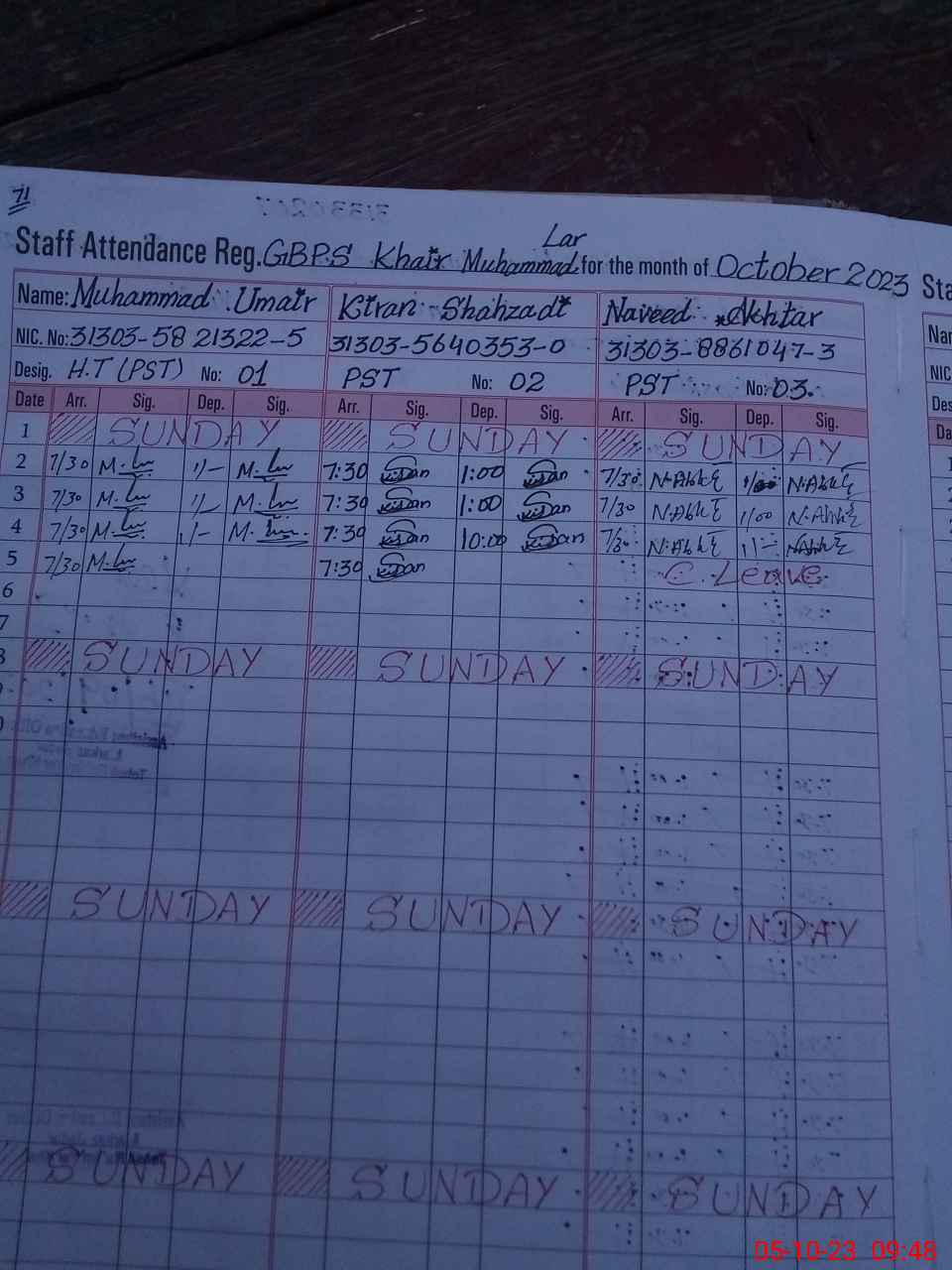 | EMIS Code: 31330207 | Name of School: GPS KHAIR MUHAMMAD LAR | |||