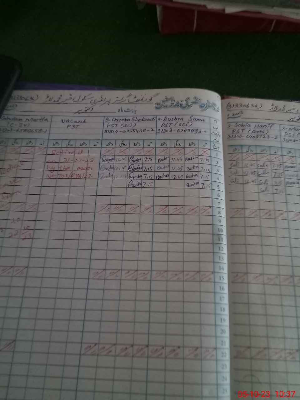 | CNIC | Full Name | Designation | R/C | Absence During Last Calender Month |