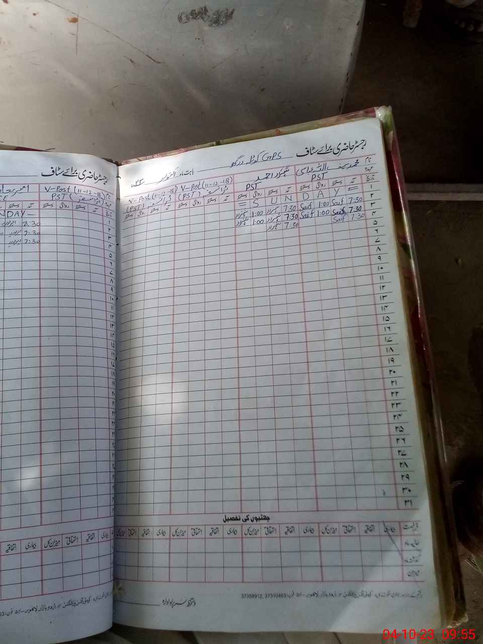 | CNIC | Full Name | Designation | R/C | Absence During Last Calender Month |