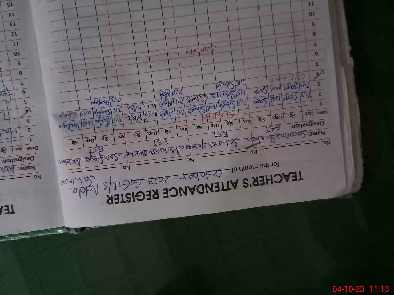 | Monitoring Date: 04-10-2023 | Start Time: 04-10-2023 11:10 AM | End Time: 04-10-2023 11:53 AM | Name of MEA: BA**** HU**** SH**** | |