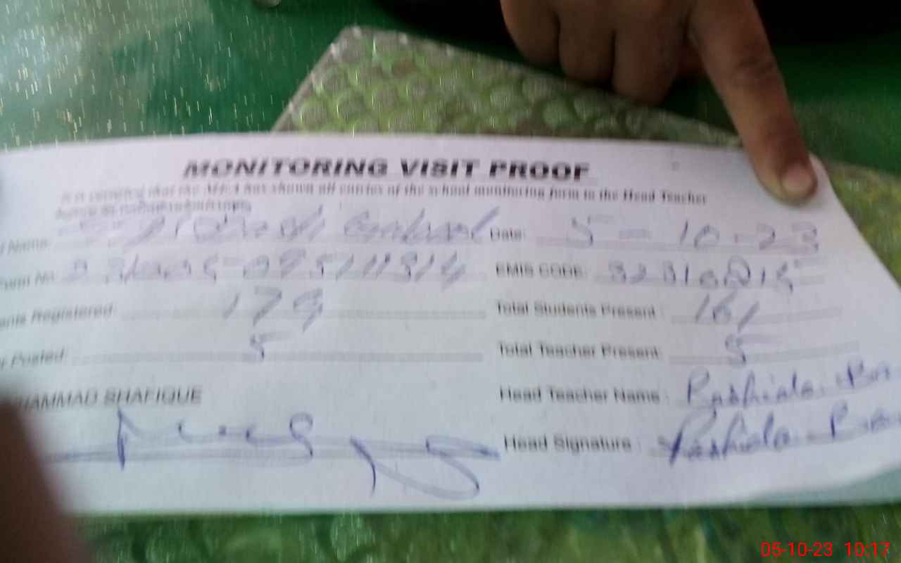 | Attendance Register | Head Teacher | MEA with School | Visit Proof |