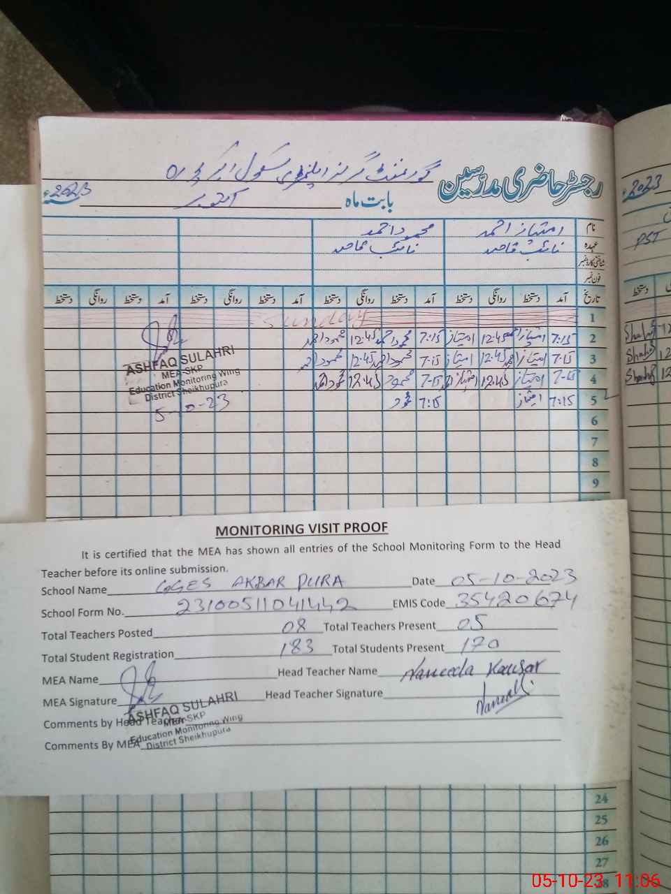 | EMIS Code: 35420674 | Name of School: GGES AKBAR PURA | |||