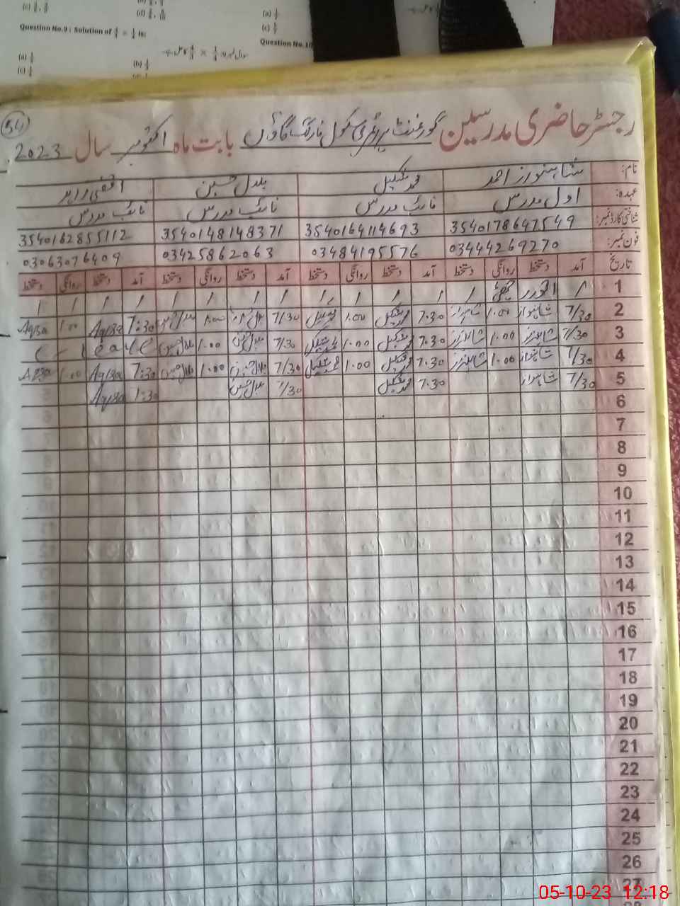 | Name: Mu**** Sh**** Ah**** Designation: (School Headmaster's/Headmistress's) PST(Arts) Phone/Cell Number: 03**** |