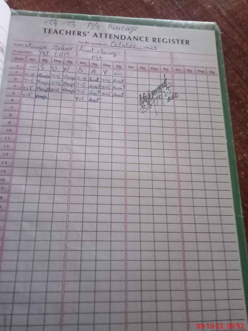 | Name: Mu**** Za**** Designation: (School Headmaster's/Headmistress's) PST Phone/Cell Number: 03**** |