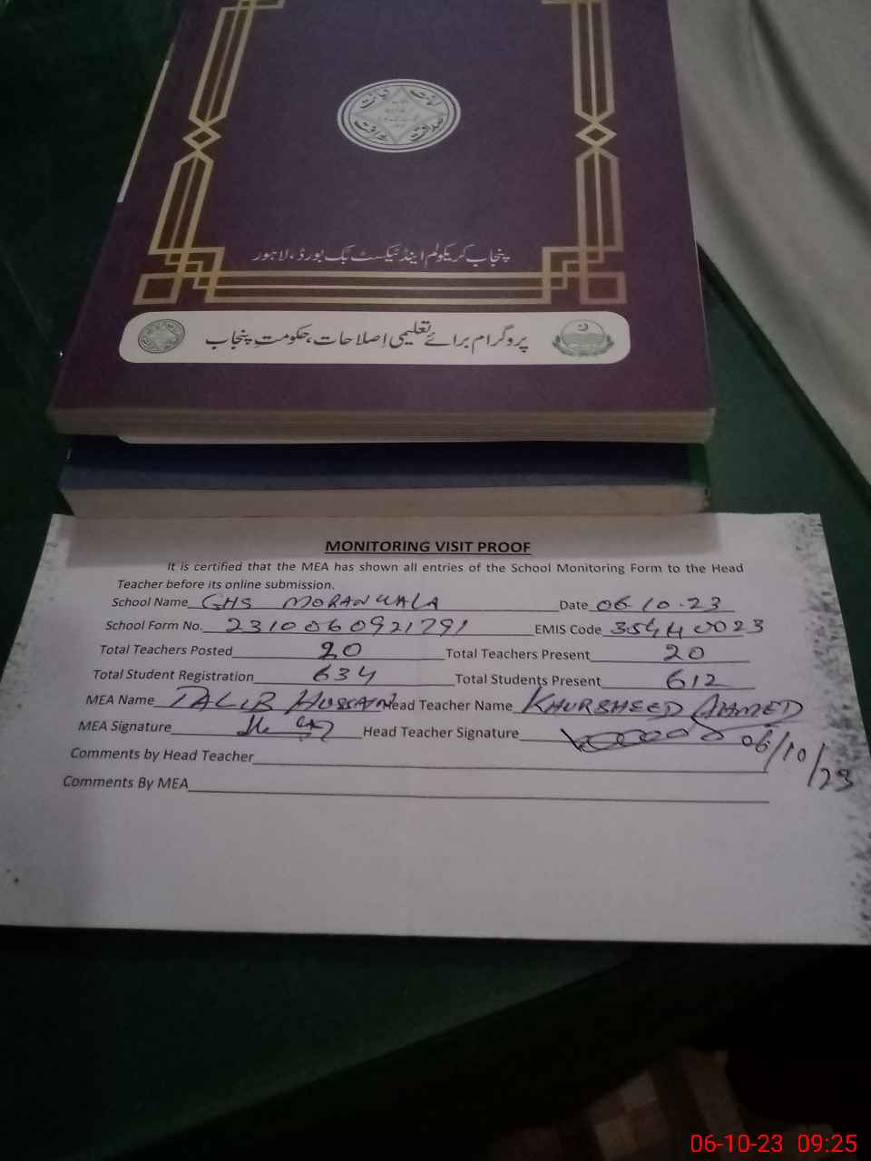 | EMIS Code: 35440023 | Name of School: GHS MILLAT MORAN WALA | |||
