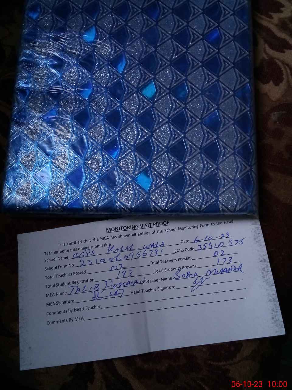 | Certified that this School was Inspected by the Undersigned MEA/DMO Today and the Information Stated Above is as Per Record. | |||||