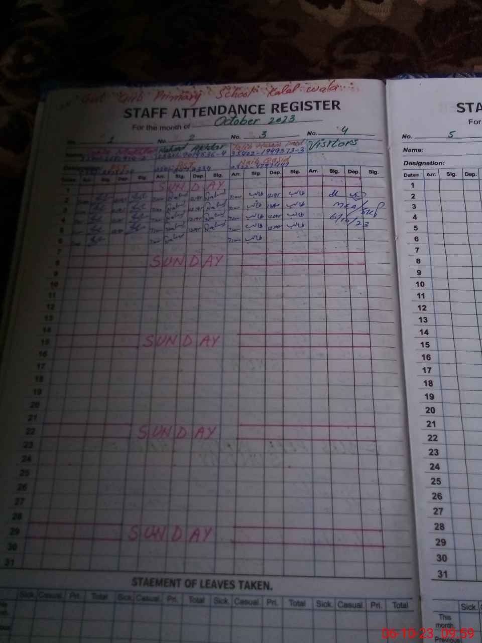 | Attendance Register | Head Teacher | MEA with School | Visit Proof |
