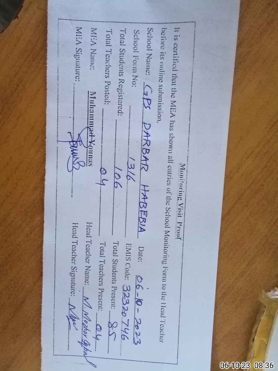 | EMIS Code: 32320746 | Name of School: GPS DARBAR HABEBIA | |||