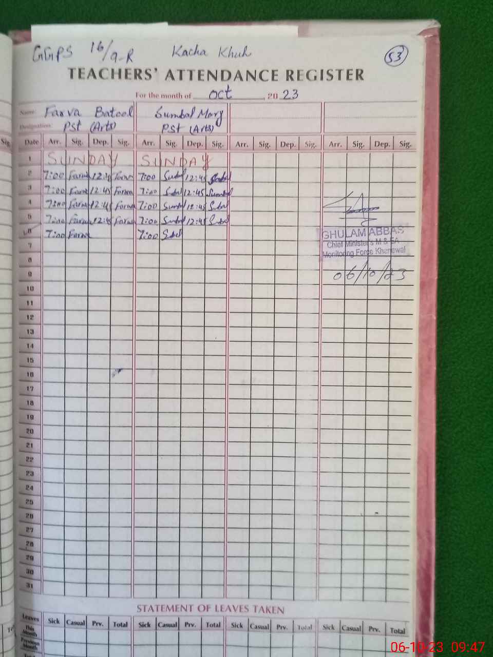 | EMIS Code: 36420463 | Name of School: GGPS 16/9-R, KACHA KHUH | |||