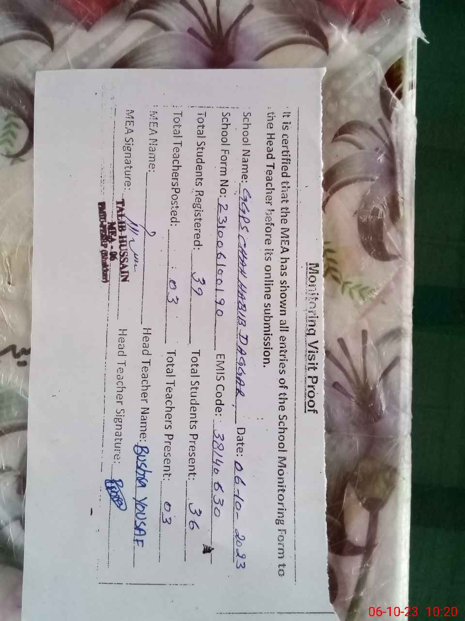 | EMIS Code: 38140630 | Name of School: GGPS CHAH HABIB DAGGAR | |||