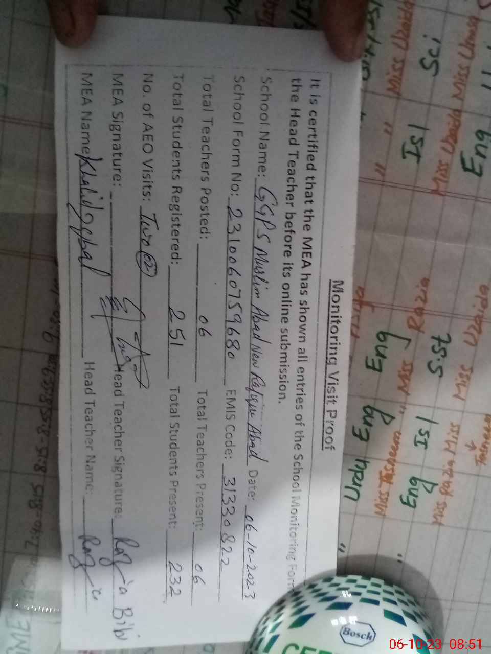 | EMIS Code: 31330822 | Name of School: GGPS MUSLIM ABAD NEW RAFEEQ ABAD | |||