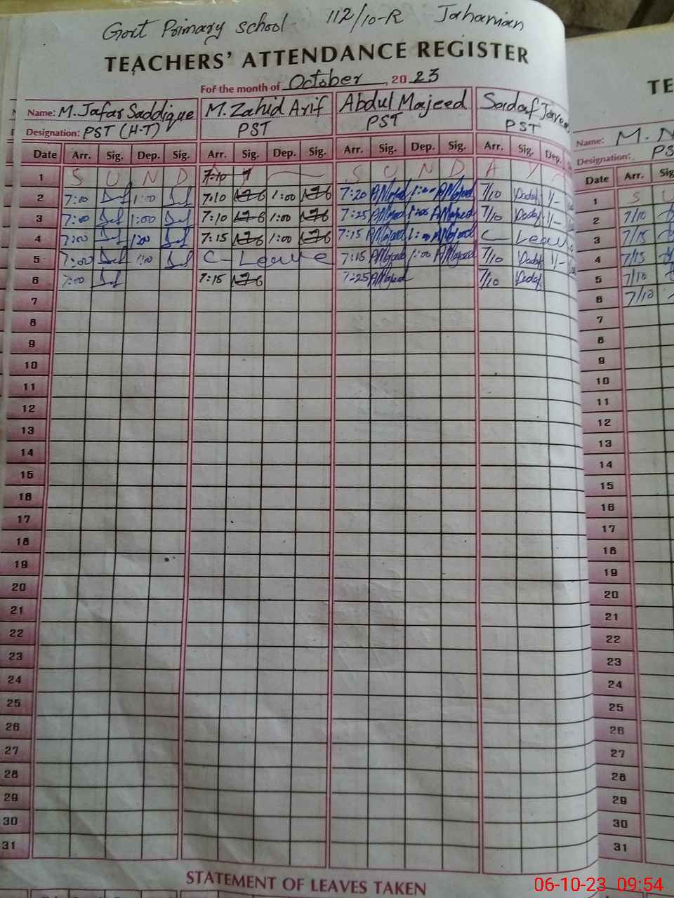 | Name: Mu**** Ja**** Si**** Designation: (School Headmaster's/Headmistress's) PST Phone/Cell Number: 03**** |