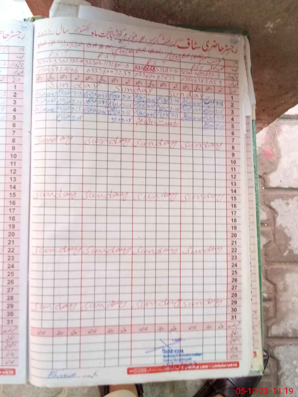 | CNIC | Full Name | Designation | R/C | Absence During Last Calender Month |