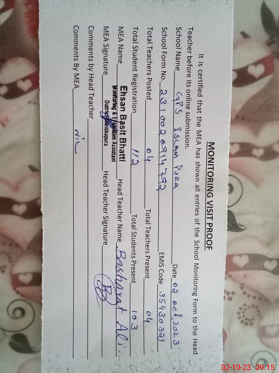 | EMIS Code: 35430321 | Name of School: GPS ISLAM PURA | |||