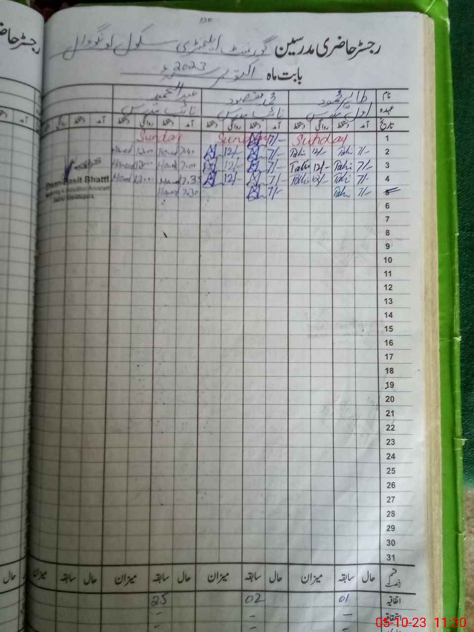 | CNIC | Full Name | Designation | R/C | Absence During Last Calender Month |