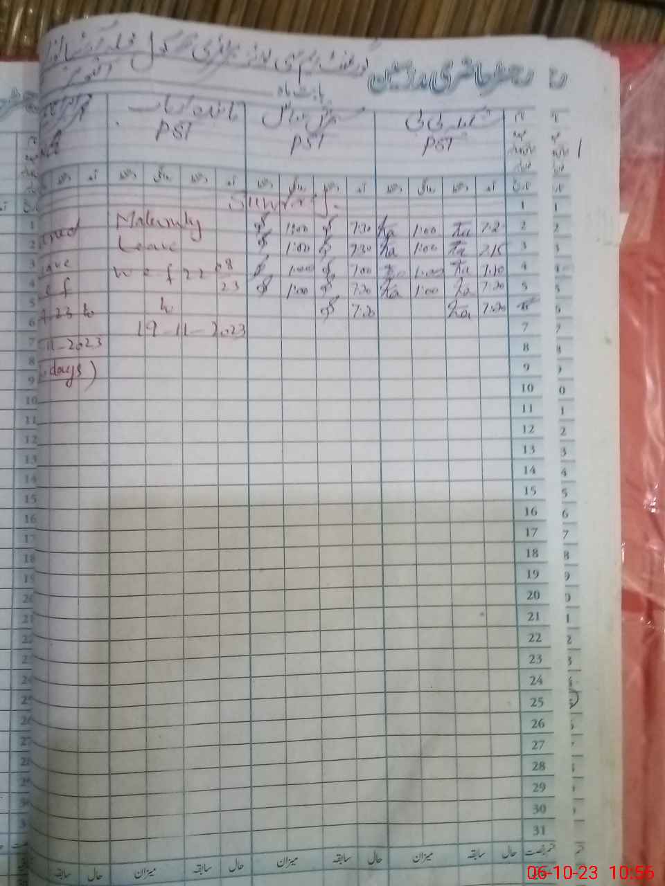 | Leave | Duty | Absent | Maternity | Medical | Ex- Pak |