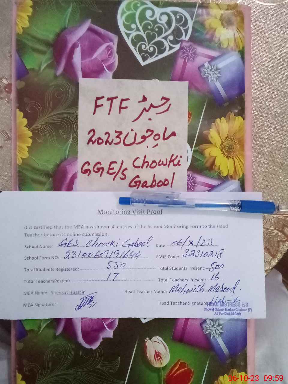 | EMIS Code: 32310218 | Name of School: GGES CHOWKI GABOOL | |||