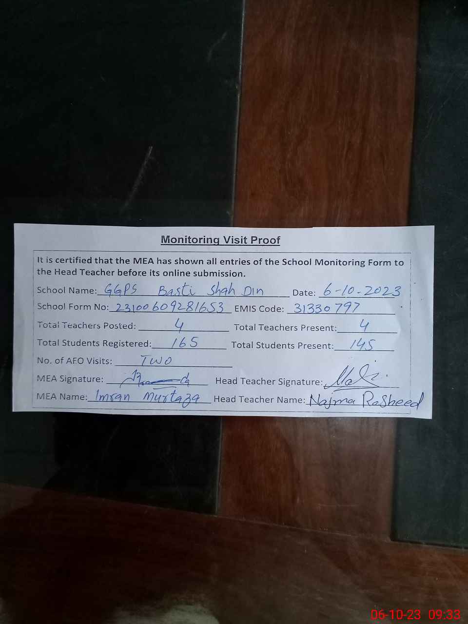 | EMIS Code: 31330797 | Name of School: GGPS BASTI SHAH DIN | |||