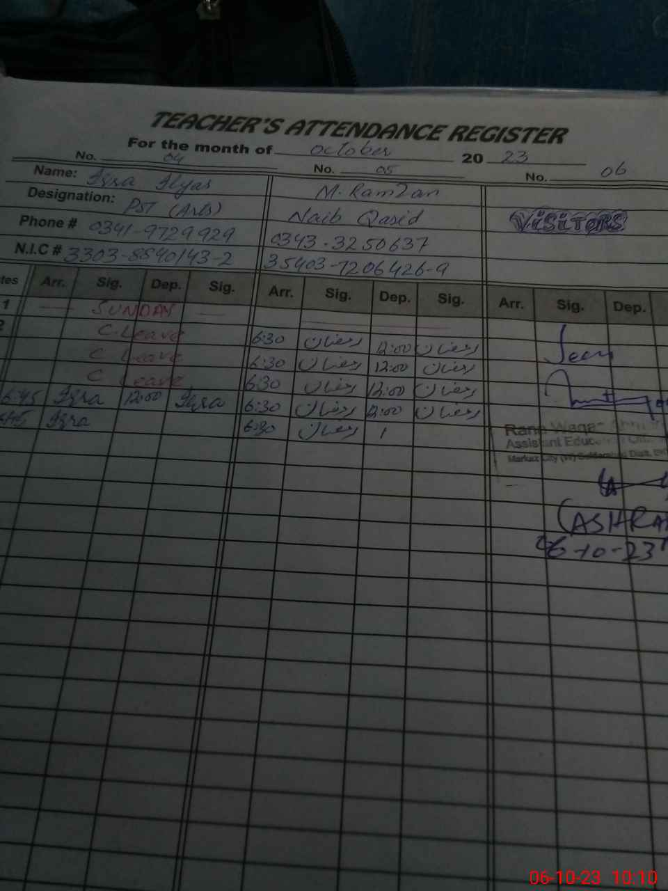 | Name: AL**** PE**** Designation: (School Headmaster's/Headmistress's) ESE Sci-math Phone/Cell Number: 03**** |