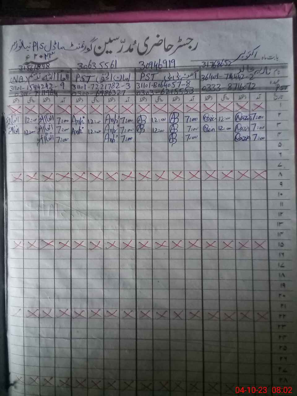 | Name: NA**** KH**** Designation: (School Headmaster's/Headmistress's) PST Phone/Cell Number: 03**** |