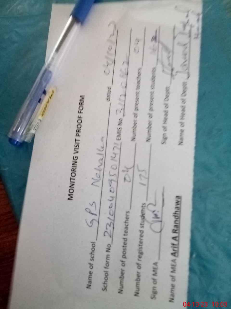 | Attendance Register | Head Teacher | MEA with School | Visit Proof |
