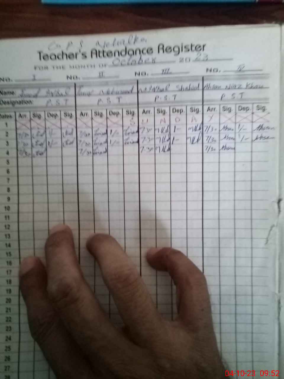 | Name: Ja**** Iq**** Designation: (School Headmaster's/Headmistress's) PST Phone/Cell Number: 03**** |