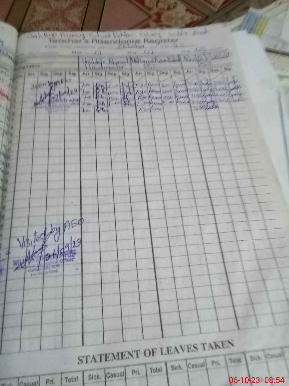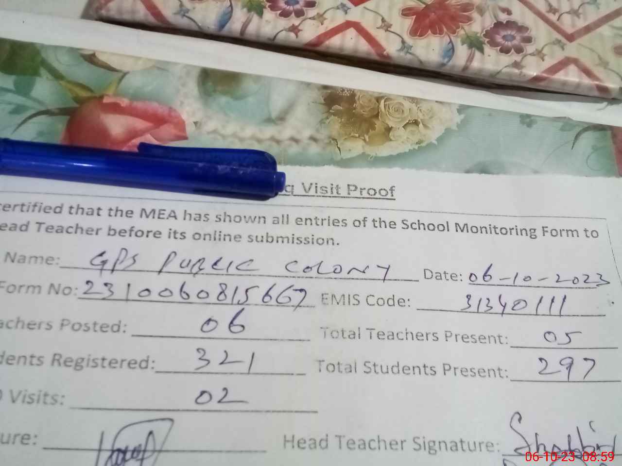 | Attendance Register | Head Teacher | MEA with School | Visit Proof |