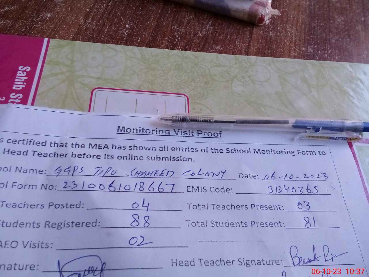 | EMIS Code: 31340365 | Name of School: GGPS TIPU SHAHEED COLONY | |||