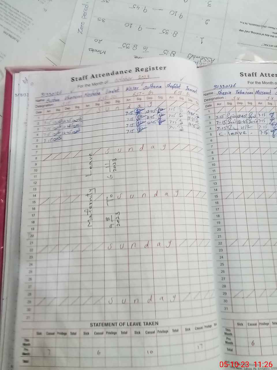 | Leave | Duty | Absent | Maternity | Medical | Ex- Pak |